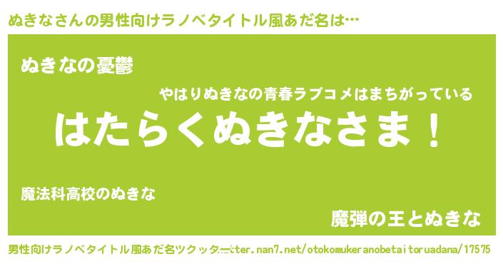 | 胡散臭い通販商品みたいなあだ名 | 『必ず成功する霊験あらたかなお札…その名も「ぬきな」』 |