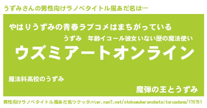 ファンタジー風あだ名 | 『ウズフェル』『エターナルウズミー』 |