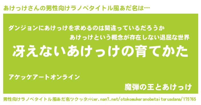 | ヒーロー風カッコイイあだ名 | 『幻影騎士アケ』『仮面アケダー』 |
