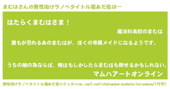 | 女子向けラノベタイトル風あだ名 | 『異世界でカフェまむはを開店しました。』 |