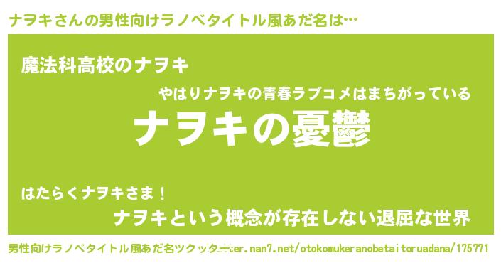 | 胡散臭い通販商品みたいなあだ名 | 『必ず成功するブレスレット…その名も「ナヲキ」』 |