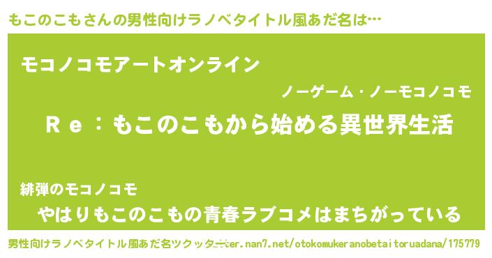| 女子向けラノベタイトル風あだ名 | 『闇のもこのこも』『もこのこも恋絵巻』 |