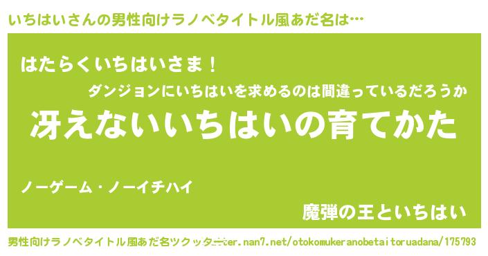 | 意味不明あだ名 | 『住所不定無職いちはい(12歳)』 |
