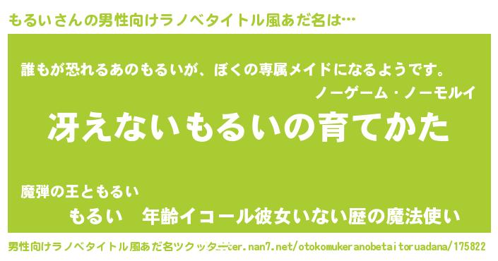| ヒーロー風カッコイイあだ名 | 『ネオモルイ』『慈愛の使者もるい』 |