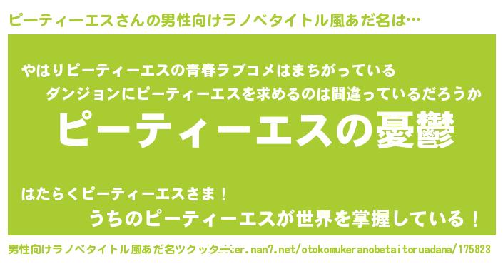 | 胡散臭い通販商品みたいなあだ名 | 『モテモテ間違いなし霊験あらたかなお札…その名も「ピーティーエス」』 |
