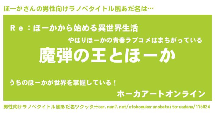 | 意味不明あだ名 | 『住所不定無職ほーか(5歳)』『自称ほーか』 |