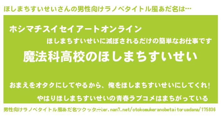 | 女子向けラノベタイトル風あだ名 | 『ほしまちすいせいなんてお断りですっ。』 |