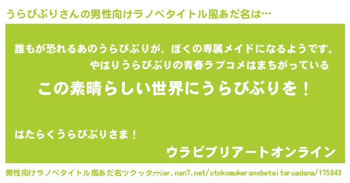 | 胡散臭い通販商品みたいなあだ名 | 『世界中を虜にした世界で10本だけ現存している希少なブランデー…その名も「うらびぶり」』 |