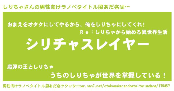 | ヒーロー風カッコイイあだ名 | 『正義の使者しりちゃ』『仮面シリダー』 |