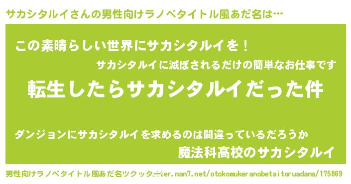 | 胡散臭い通販商品みたいなあだ名 | 『世界中を虜にした世界で10本だけ現存している希少なブランデー…その名も「サカシタルイ」』 |