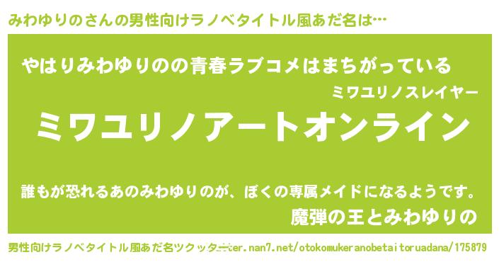 | 胡散臭い通販商品みたいなあだ名 | 『億万長者になれる霊験あらたかなお札…その名も「みわゆりの」』 |