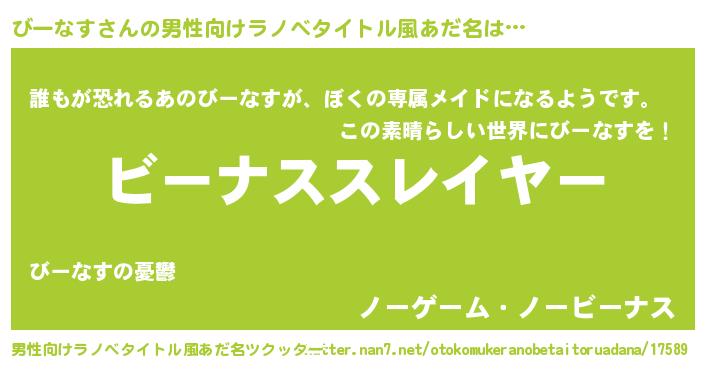 | 胡散臭い通販商品みたいなあだ名 | 『絶対に幸福をもたらす健康食品…その名も「びーなす」』 |