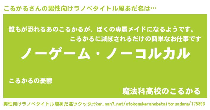 | 伝説のあだ名 | 『救世主となる占い師こるかる』 |