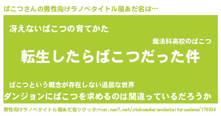 | 意味不明あだ名 | 『もやし科ばこつ属』『自称ばこつ』 |