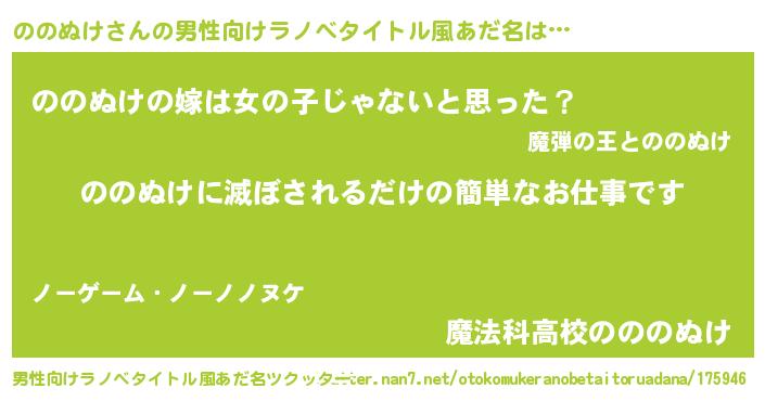 | ヒーロー風カッコイイあだ名 | 『天弓騎士ノノ』『究極戦士ノノヌケ』 |