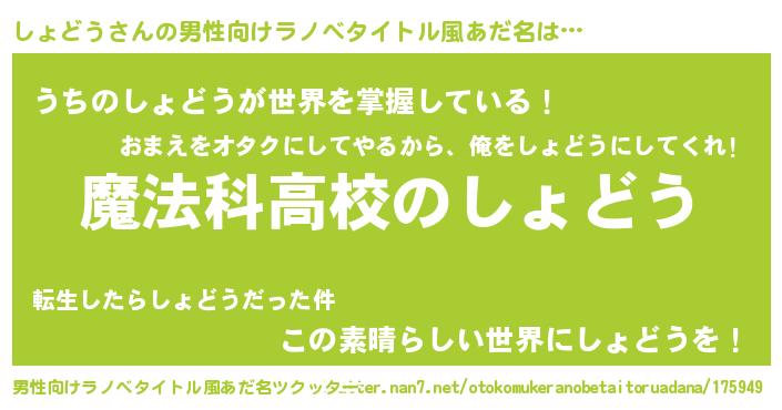 | 女子向けラノベタイトル風あだ名 | 『しょどうなんてお断りですっ。』 |