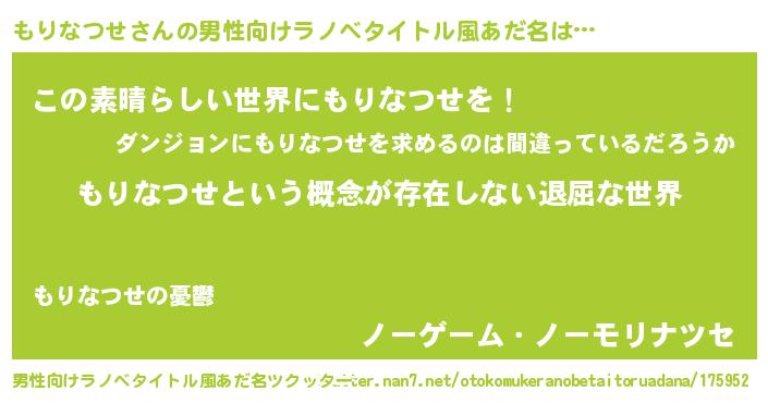 | 胡散臭い通販商品みたいなあだ名 | 『絶対に幸福をもたらす健康食品…その名も「もりなつせ」』 |