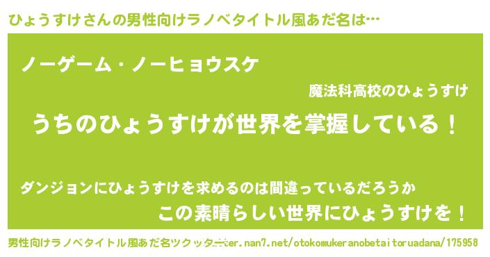 | 女子向けラノベタイトル風あだ名 | 『男装ひょうすけの憂鬱な任務』 |