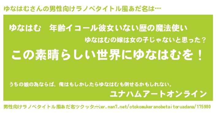 | 意味不明あだ名 | 『住所不定無職ゆなはむ(2歳)』 |