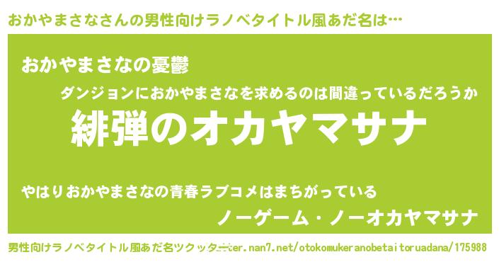 | 胡散臭い通販商品みたいなあだ名 | 『必ず成功する霊験あらたかなお札…その名も「おかやまさな」』 |