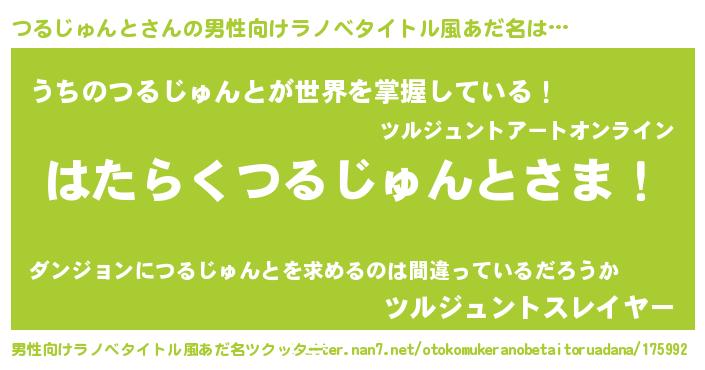 つるじゅんとさんの男性向けラノベタイトル風あだ名をツクッター!
