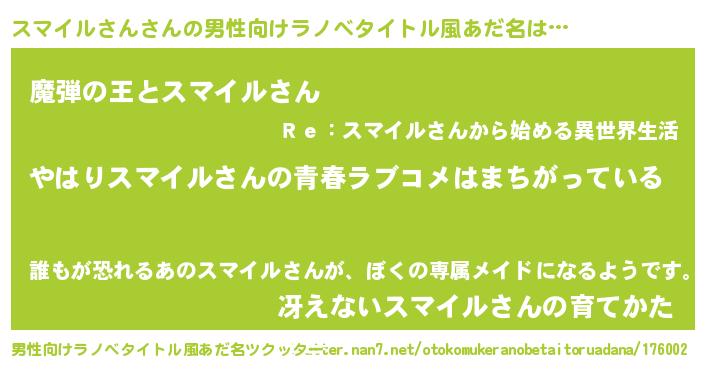 | 女子向けラノベタイトル風あだ名 | 『スマイルさんの雑貨屋さん』 |