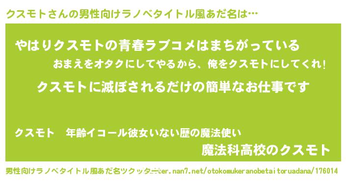 | 胡散臭い通販商品みたいなあだ名 | 『運命の人と巡り会える高級そうな壺…その名も「クスモト」』 |