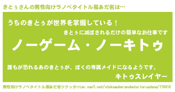 | 女子向けラノベタイトル風あだ名 | 『きとぅ恋絵巻』『横柄きとぅと宰相陛下』 |