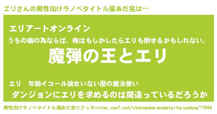 | ヒーロー風カッコイイあだ名 | 『仮面エリダー』『スーパーエリ』 |