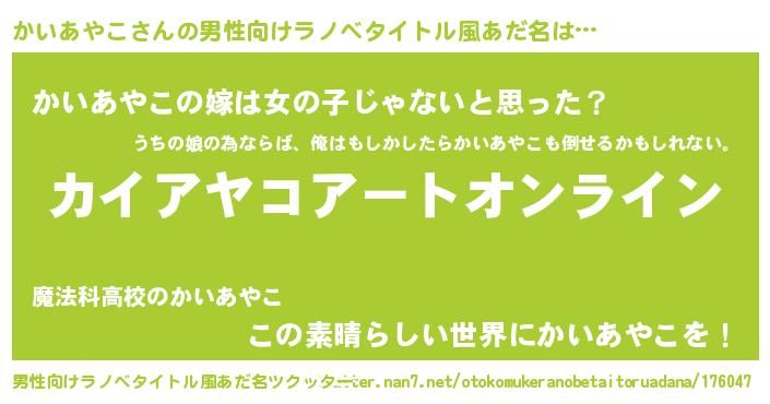 | 意味不明あだ名 | 『ペロリンかいあやこ』『自称かいあやこ』 |