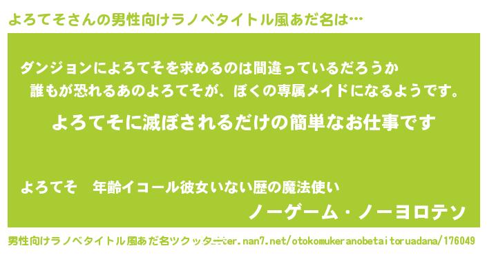 | 伝説のあだ名 | 『覚醒した僧侶よろてそ』 |
