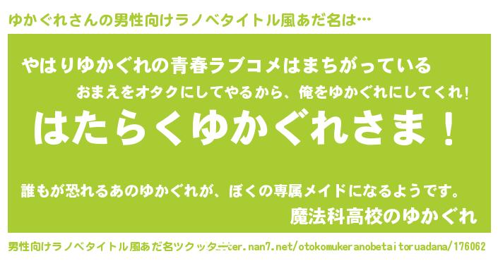| ヒーロー風カッコイイあだ名 | 『ウルトラゆかぐれマン』『ネオユカグレ』 |