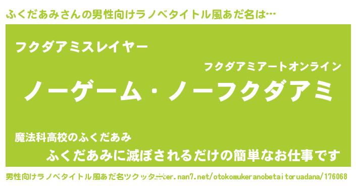 | ヒーロー風カッコイイあだ名 | 『慈愛の使者ふくだあみ』『黄金騎士フク』 |