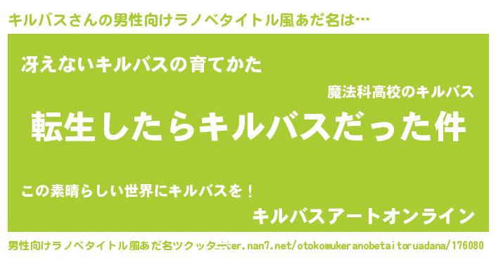 | 意味不明あだ名 | 『なめこ科キルバス属』『自称キルバス』 |