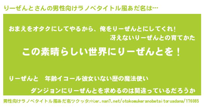 | 意味不明あだ名 | 『住所不定無職りーぜんと(41歳)』 |