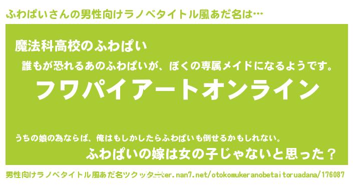 | 欧米人風あだ名 | 『マイケルふわぱい』『ウサインふわぱい』 |