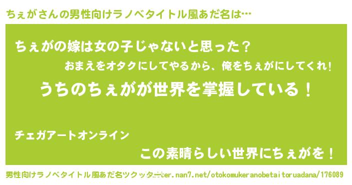 | 意味不明あだ名 | 『とにかく怪しいちぇが』 |