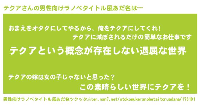 | ヒーロー風カッコイイあだ名 | 『ネオテクア』『正義の使者テクア』 |