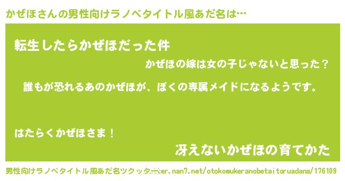 | 欧米人風あだ名 | 『ダルビッシュかぜほ』『ウサインかぜほ』 |