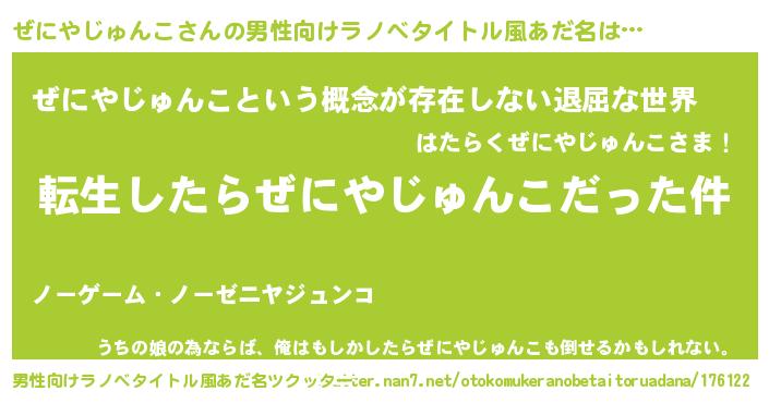 | 胡散臭い通販商品みたいなあだ名 | 『来世でも幸せになれる招き猫…その名も「ぜにやじゅんこ」』 |