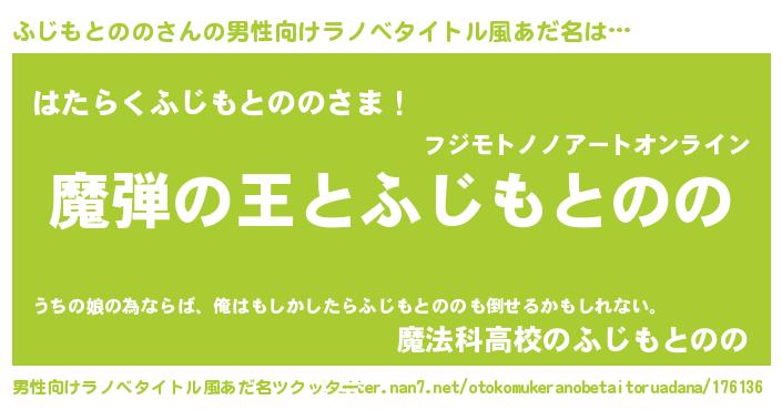 | 女子向けラノベタイトル風あだ名 | 『ふじもとののが死なない童話 林檎のふじもとののの診療簿』 |