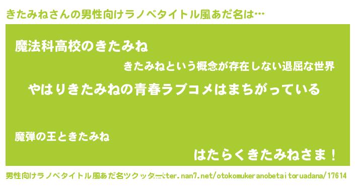 | 女子向けラノベタイトル風あだ名 | 『きたみね伯爵の花嫁』 |
