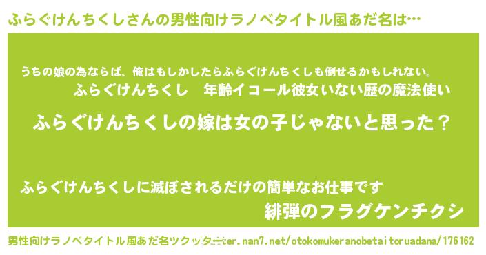 | 女子向けラノベタイトル風あだ名 | 『ふらぐけんちくし様がみてる』 |