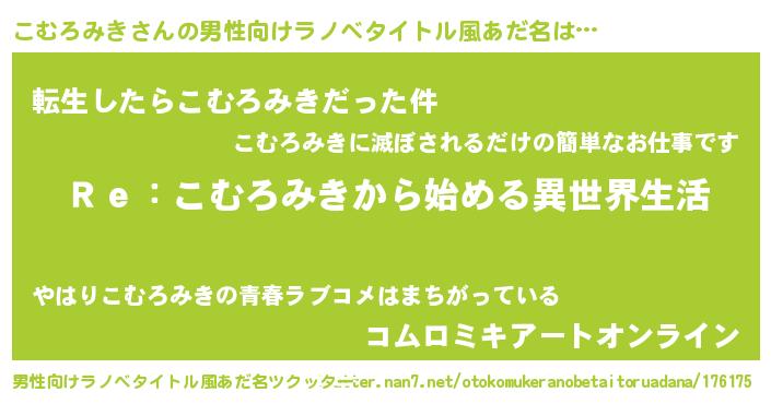 | 女子向けラノベタイトル風あだ名 | 『闇のこむろみき』 |