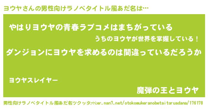 | 女子向けラノベタイトル風あだ名 | 『ヨウヤは平凡を望む』 |