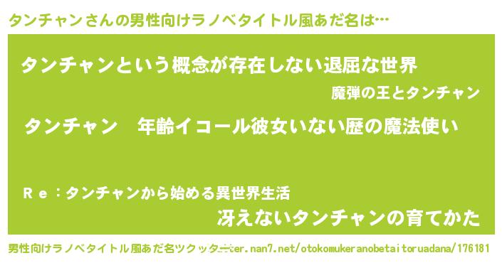 ヘコむあだ名 | 『タンチャン(小並感)』『タンっぺ』 |