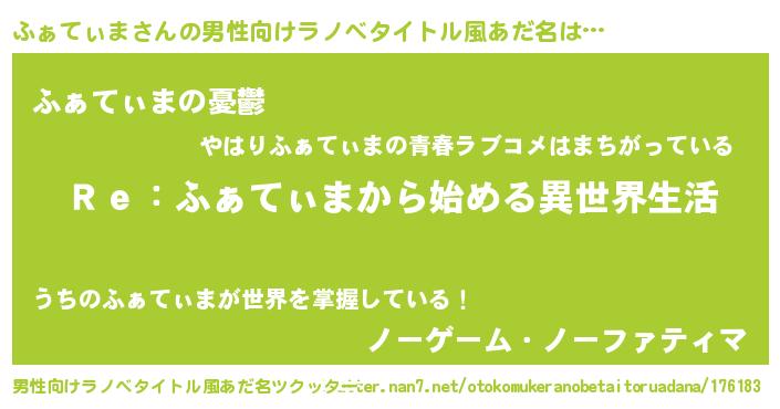 | 女子向けラノベタイトル風あだ名 | 『ふぁてぃまストレイドッグス』 |