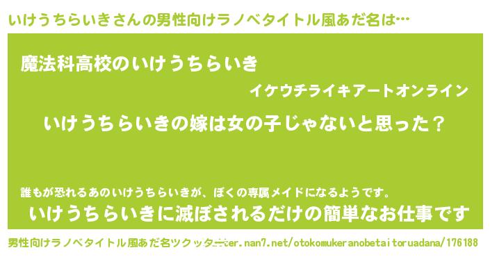 | 女子向けラノベタイトル風あだ名 | 『いけうちらいき様がみてる』 |