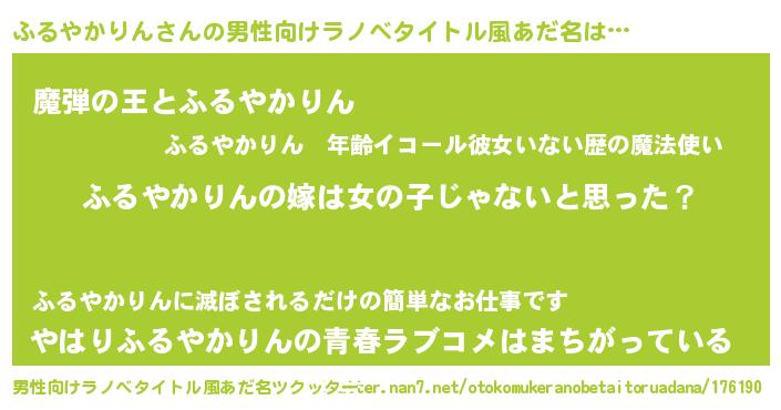 | 伝説のあだ名 | 『覚醒した遊び人ふるやかりん』 |
