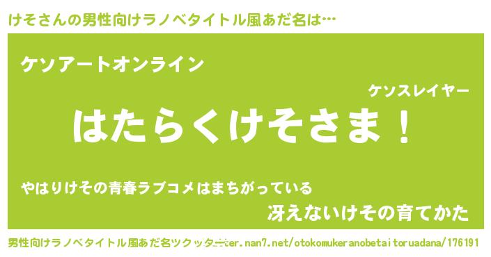 | 胡散臭い通販商品みたいなあだ名 | 『必ず成功するブレスレット…その名も「けそ」』 |
